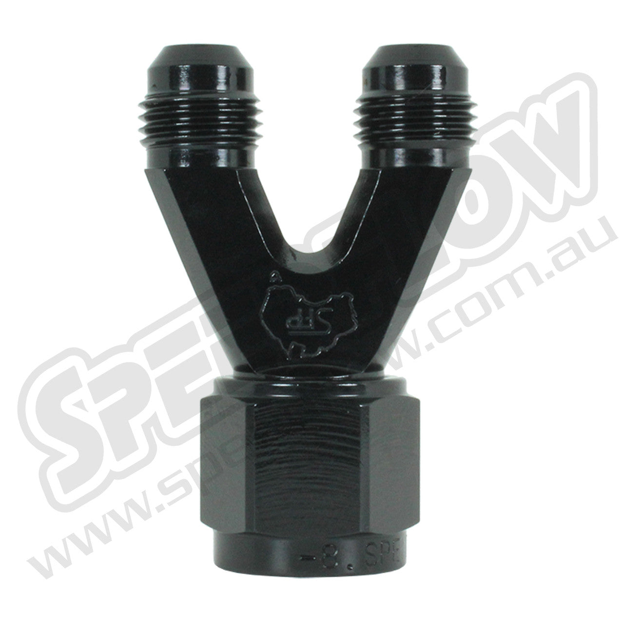 The 146 "Y" fitting uses a female AN swivel and steps down to two male AN fittings, offering a parallel outlet for a more compact setup.